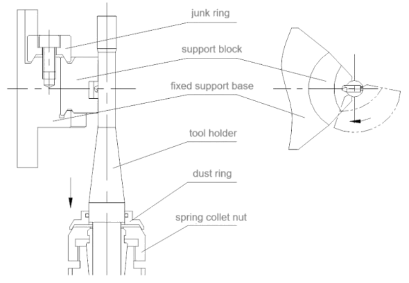 ●โครงสร้างการรองรับแบบเครื่องตัดแบบใช้บนคุณสมบัติของเครื่องมือเครื่องจักรประเภทเดียวกันในอิตาลี บล็อกสนับสนุนได้รับการสนับสนุนโดยพื้นผิวอาร์คซึ่งมีเอฟเฟกต์การสนับสนุนที่ดี อาร์เบอร์คัตเตอร์ได้รับการแก้ไขด้วยน็อตชัคสปริง ในเวลาเดียวกันมีการใช้ปลายที่สามารถเคลื่อนย้ายได้ที่ด้านบนของอาร์เบอร์คัตเตอร์เพื่อปรับปรุงความแข็งแกร่งและความแม่นยำของอาร์เบอร์คัตเตอร์ เครื่องตัดการบินมีโครงสร้างที่สมเหตุสมผลทำให้มีความแข็งแกร่งสูงและมีความแม่นยำสูง